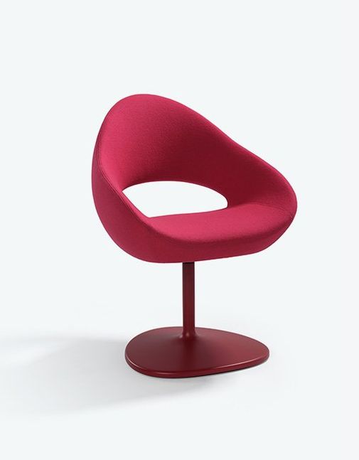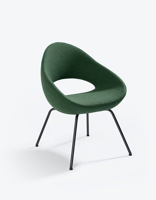 De eetkamerstoel is verkrijgbaar in verschillende materialen en kleuren en het onderstel is verkrijgbaar als vier poot, slede, draaibaar schijfonderstel met terughaalmechanisme of (draai)kruisvoet.