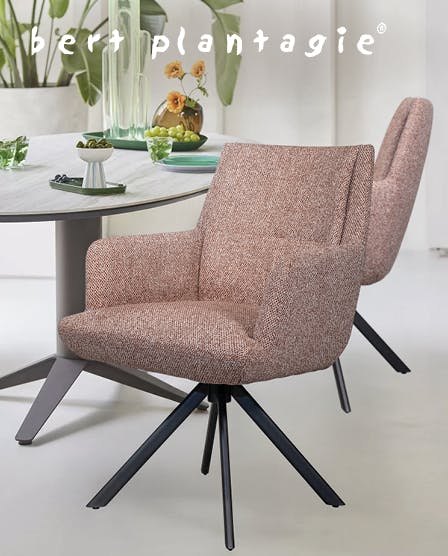 Nu 10% introductiekorting op eetkamerstoel Rosie en een dienblad t.w.v. €39,95 cadeau bij aankoop vanaf €500,- aan Bert Plantagie meubelen in onze woonwinkels in Zupthen & Veenendaal!