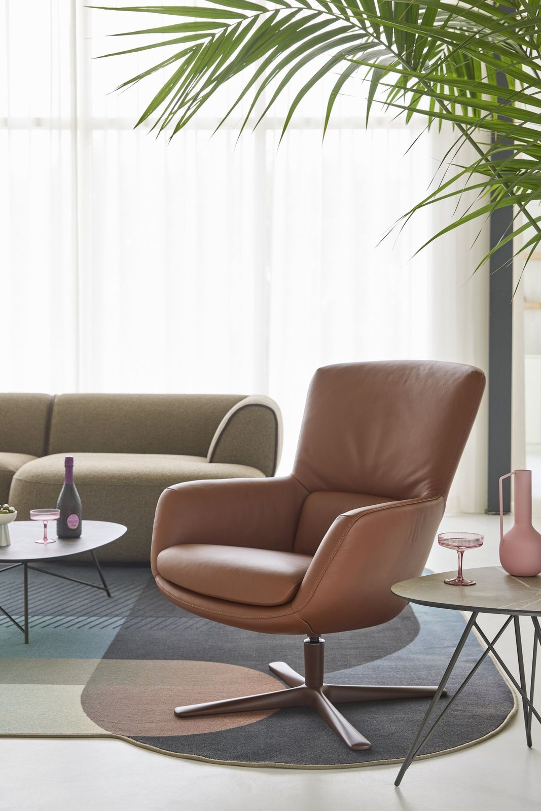 De Bert Plantagie Aida draaifauteuil kenmerkt zich door zijn uitnodigende vormgeving en verfijnde afwerking. De zachte, afgeronde lijnen en de geïntegreerde armleuningen zorgen voor een comfortabele en ontspannen zit, terwijl het draaibare onderstel een functioneel en modern accent toevoegt. Als offerteartikel is de Aida fauteuil verkrijgbaar in diverse stoffen, leersoorten en kleuren, waardoor deze volledig kan worden afgestemd op de gewenste interieurstijl.