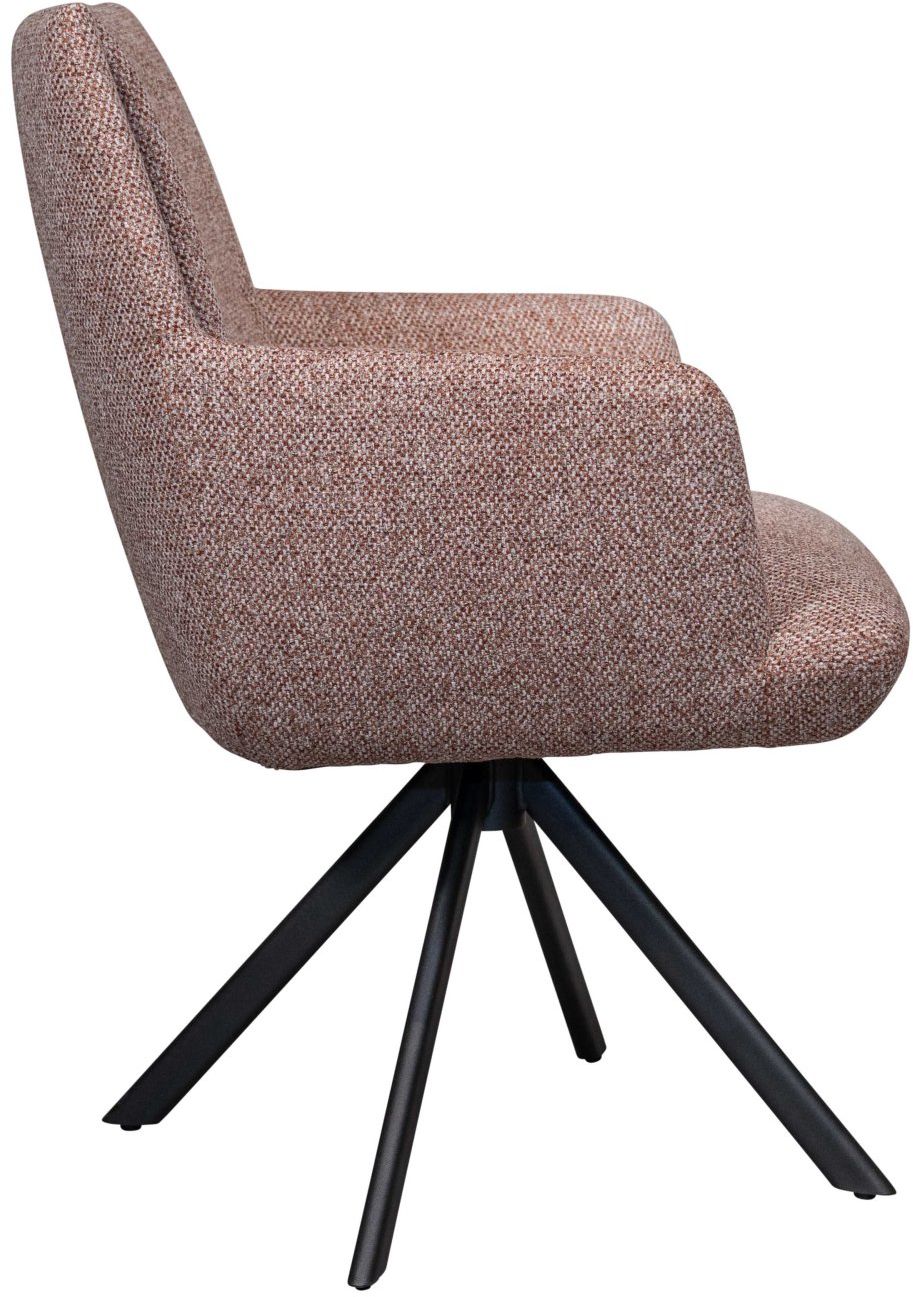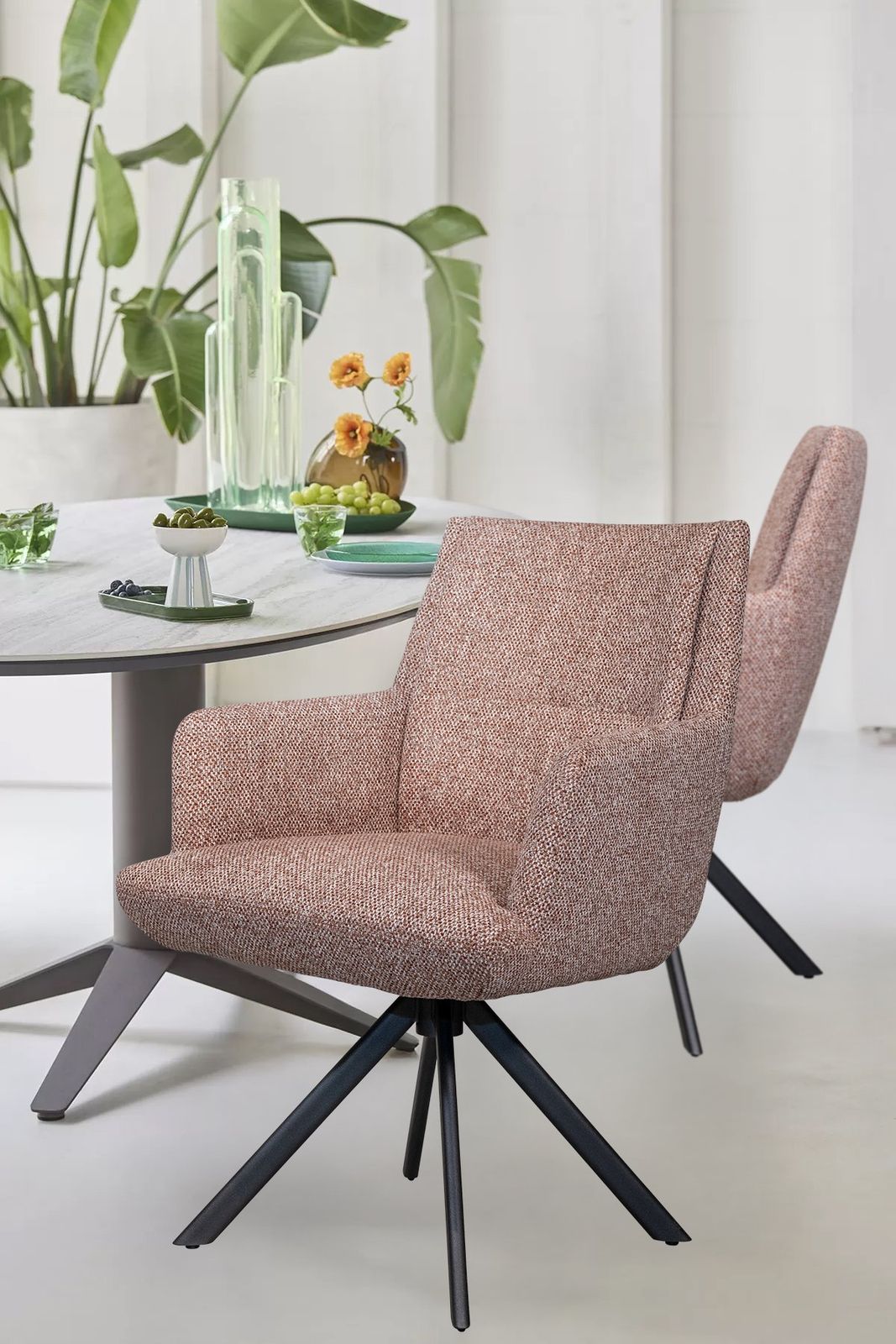 Eetkamerstoel Rosie van Bert Plantagie brengt stijl en comfort moeiteloos samen aan de eettafel. De bruine bekleding zorgt direct voor een sfeervolle en elegante uitstraling, terwijl de praktische draaifunctie het instappen en aanschuiven extra gemakkelijk maakt. De zitting van de eetkamerstoel is voorzien van een extra rugleuning, waardoor het zitcomfort naar een hoger niveau wordt getild. Het zwarte onderstel geeft Rosie een tijdloze, elegante touch.