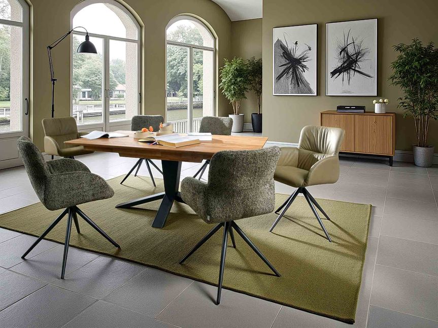 Eetkamerstoel Ruby is volledig naar wens samen te stellen. Kies uit diverse stof- en ledersoorten, kleuren en onderstelafwerkingen om de stoel perfect af te stemmen op jouw interieur. Vraag online vrijblijvend een offerte aan en ontdek alle mogelijkheden van de Ruby stoel!