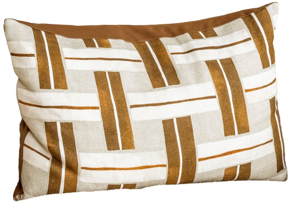 Het Camel sierkussen van Claudi voegt functionaliteit en afwerking toe aan je interieur. Het kussen is uitgevoerd in een geometrisch dessin met bruin- en wittinten en biedt dankzij de rechthoekige vorm een praktische ondersteuning voor bank of fauteuil. De hoogwaardige stof en vulling zorgen voor langdurig gebruiksgemak. Combineer het sierkussen met andere kussens van Claudi voor een samenhangend geheel.