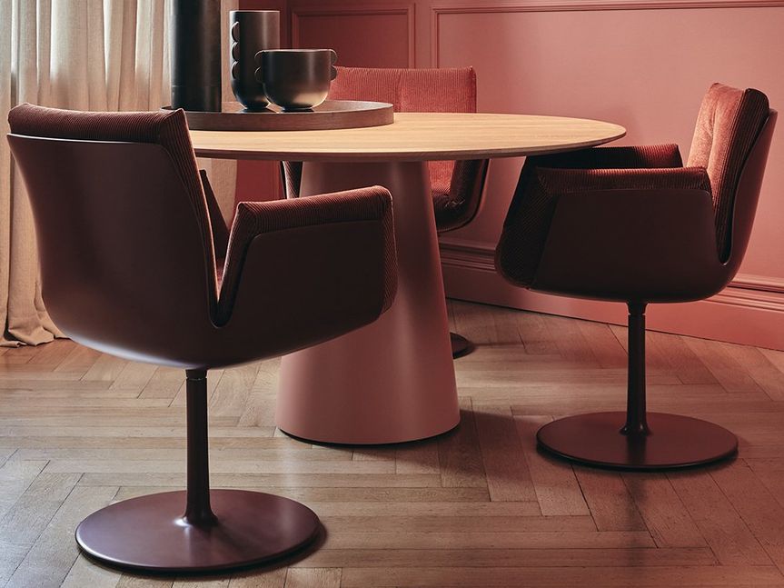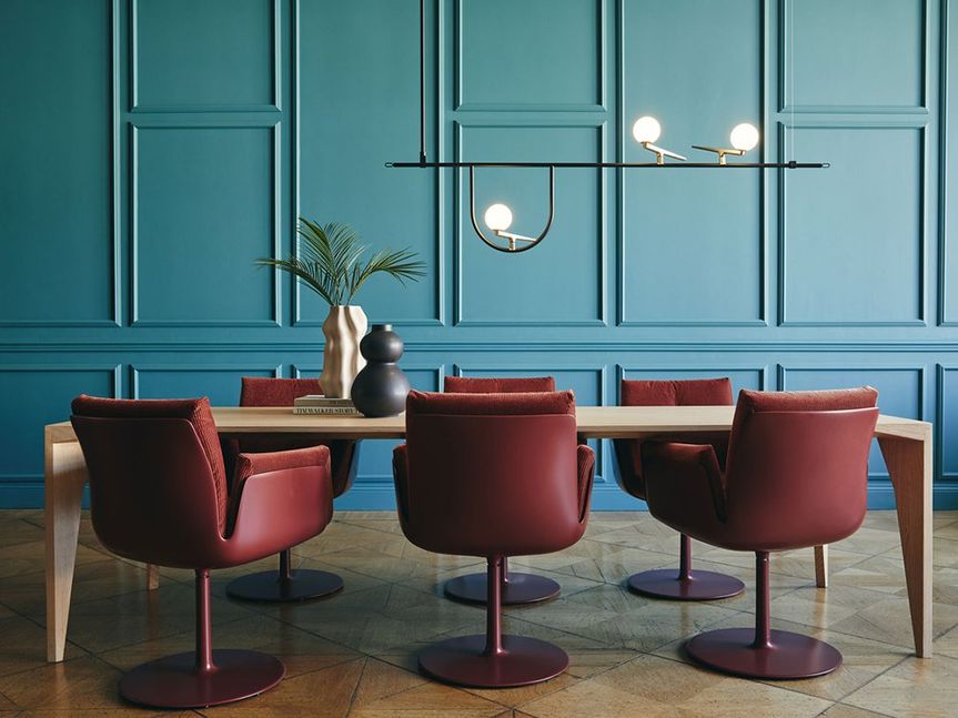 Draaistoel Alvo is een tijdloze stoel waarin ergonomische kwaliteit en elegantie samenkomen. Het slanke, draaibare onderstel zorgt voor maximale bewegingsvrijheid aan tafel, zonder in te leveren op stabiliteit. De zitschaal is ergonomisch gevormd en biedt een uitnodigend zitcomfort, terwijl de ingetogen lijnen en verfijnde proporties zorgen voor een rustige, hoogwaardige uitstraling. Draaistoel Alvo is verkrijgbaar in een selectie van luxe stoffen en premium leersoorten.