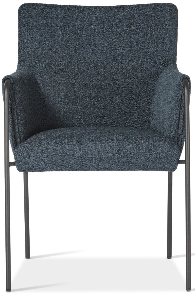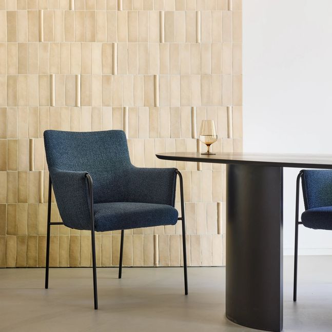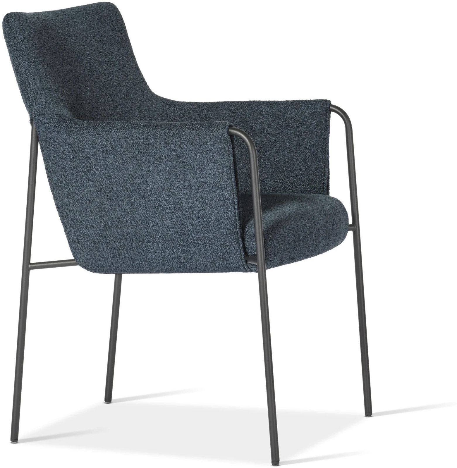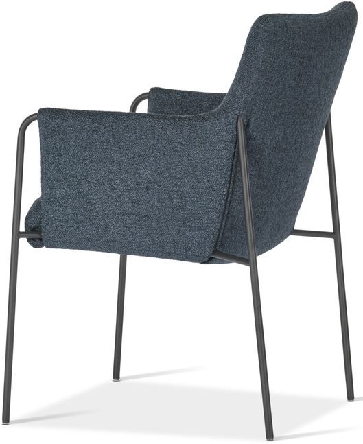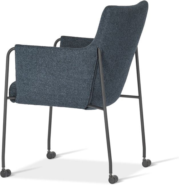 Het slanke metalen frame vormt een subtiel contrast met de vloeiende lijnen van de royale zitkuip, waardoor de stoel zowel licht oogt als stevig aanvoelt. Een tijdloos ontwerp dat esthetiek en functionaliteit in balans brengt.