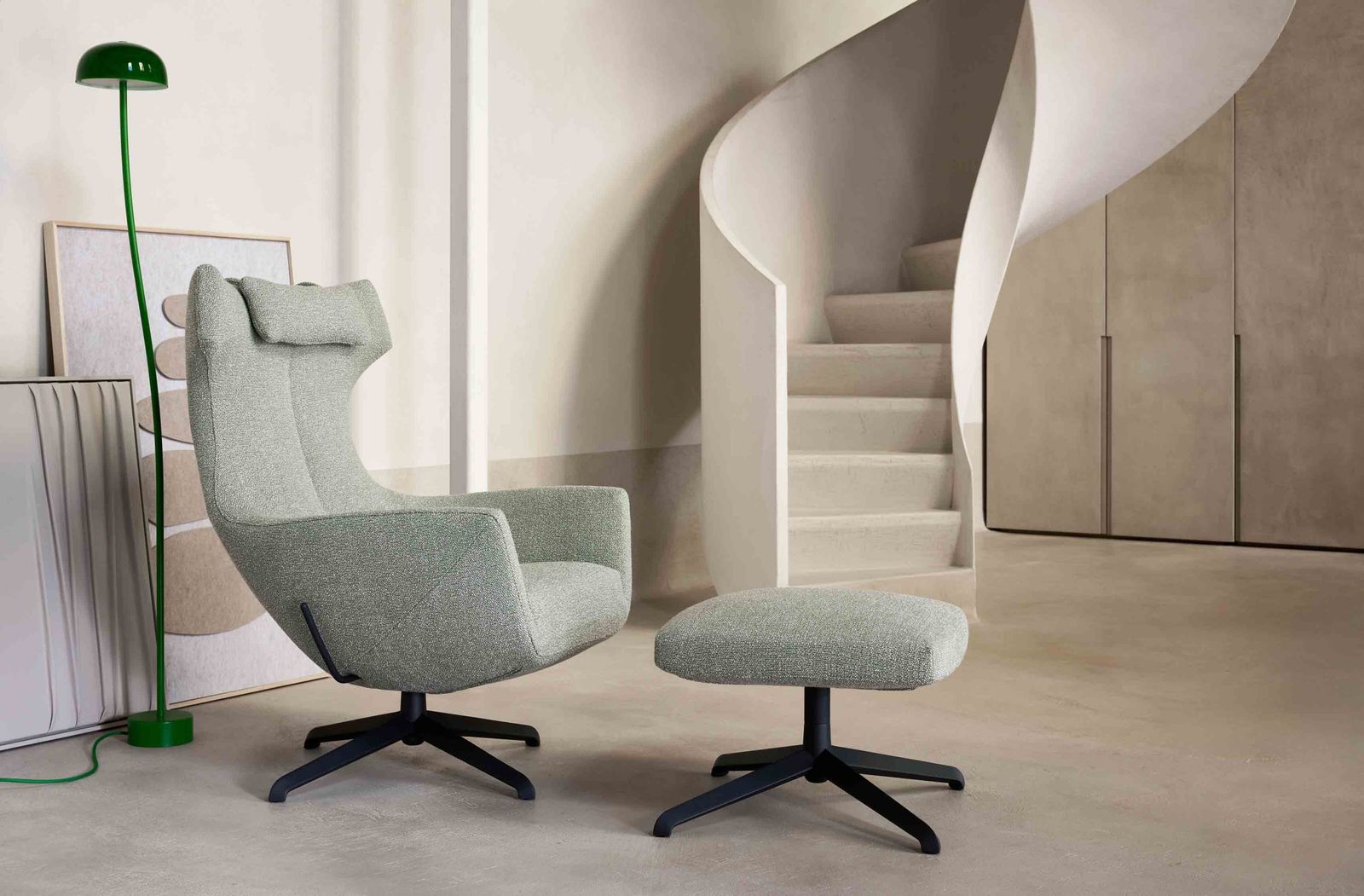 De Nosto is naar wens samen te stellen in diverse hoogwaardige stoffen en leersoorten. Het onderstel is standaard uitgevoerd in de kleur Onyx, maar kan ook in andere kleuren worden afgewerkt. Daarnaast is de fauteuil leverbaar met een bijpassende poef en een optioneel hoofdkussen.