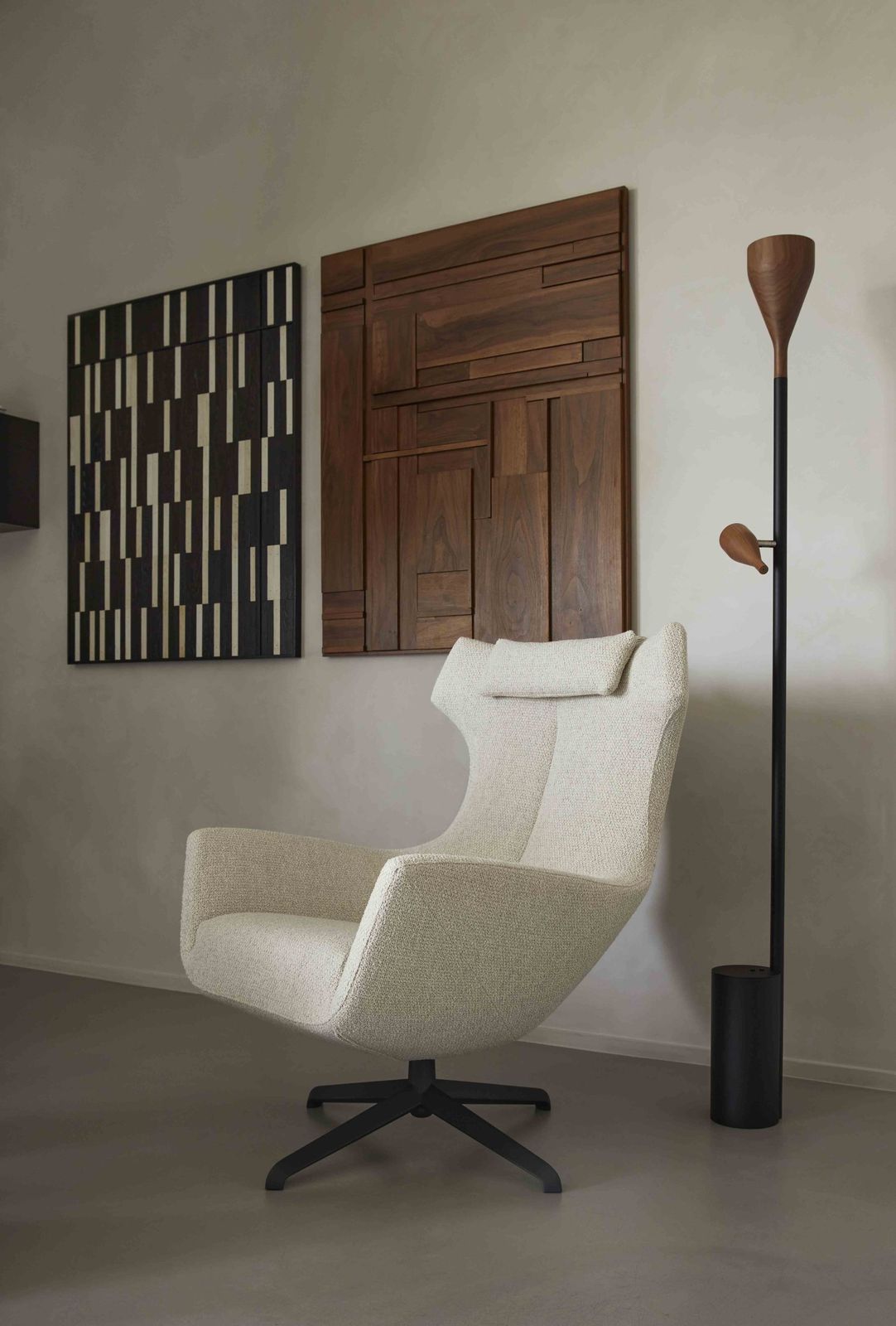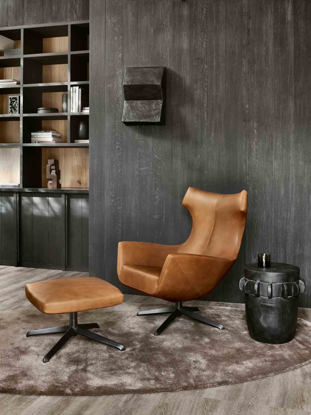 De Nosto fauteuil van Design on Stock is ontworpen door Studio Tom Dissel. Met oog voor geometrische vormen en verfijnde lijnen creëerde hij een ontwerp dat perfect in balans is tussen comfort en uitstraling. Het geïntegreerde kantelmechanisme in combinatie met de bijpassende poef zorgt voor een uitzonderlijk zitcomfort. Optioneel kan de fauteuil worden voorzien van een hoofdkussen dat het ontwerp compleet maakt.