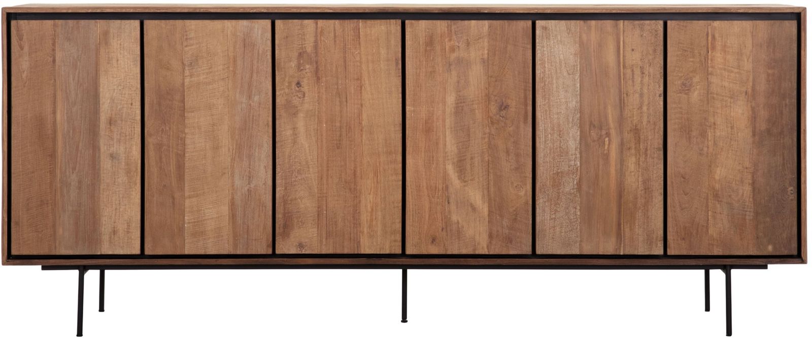 Metropole dressoir van DTP Home biedt voldoende opbergruimte. Deze karaktervolle opberger heeft namelijk 6 handige kastdeuren. Zo is er voldoende ruimte om spullen uit het zicht op te bergen, of om accessoires juist in het zicht op de kast te zetten. Metropole is gemaakt van gerecycled teakhout dat met de hand is bewerkt. Hierdoor zijn de scheurtjes, lijnen en onregelmatigheden op de opbergkast nog zichtbaar. Door de combinatie van het robuuste teakhout en de metalen accenten krijgt de kast een stoere uitstraling.