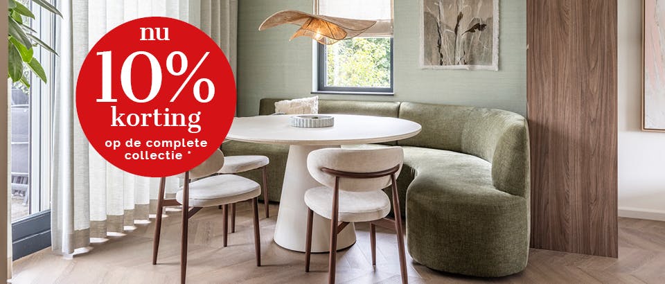 Profiteer nu van 10% korting op de complete collectie* online en in onze winkels in Zutphen & Veenendaal. Shop nu alle eettafels van bekende merken met voordeel.