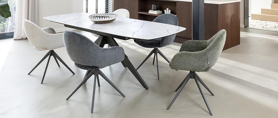 Het onderstel bepaalt niet alleen de stabiliteit maar ook de uitstraling van antracieten eetkamerstoelen. Bij Eijerkamp vind je diverse opties, zoals metalen of houten poten in verschillende kleuren en afwerkingen. Of het nu gaat om een industriële look met een zwart metalen frame of een natuurlijke uitstraling met houten poten, er is volop keuze. Ook draaistoelen met centrale onderstellen en varianten met rechte, slede- of kruisvormige poten zijn beschikbaar voor extra comfort en stijl.
