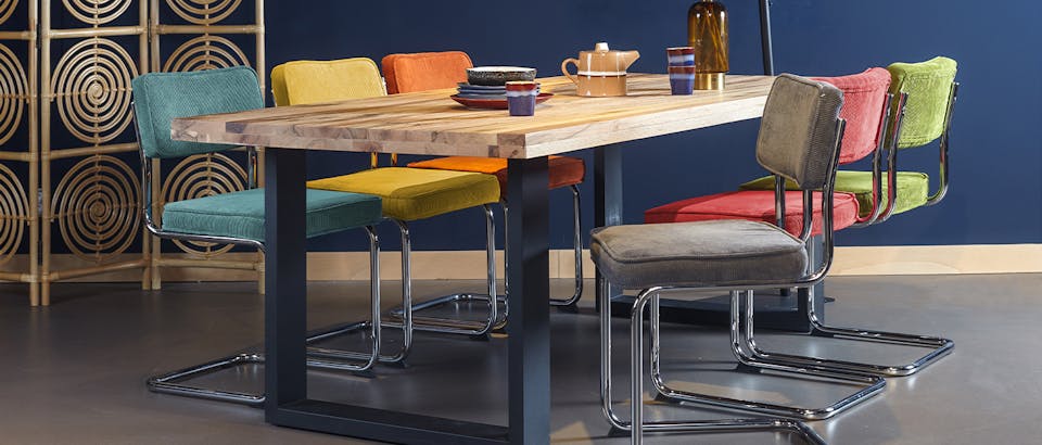 Geen eetkamer is hetzelfde, en daarom is de keuze in boomstamtafels bij Eijerkamp enorm gevarieerd. Of je nu een gezellige ronde tafel zoekt voor kleinere ruimtes, of een grote rechthoekige tafel van 240 centimeter om met vrienden en familie uitgebreid te tafelen, het kan allemaal. Daarnaast kun je het onderstel aanpassen aan jouw woonwensen. Een metalen frame geeft een stoer en industrieel karakter aan de tafel. Kies je liever voor een houten onderstel, dan krijgt de eethoek een landelijke en warme uitstraling. De houtafwerking is er in verschillende tinten: van naturel tot diep zwart, waarmee je sfeer en contrast brengt in je interieur zonder af te doen aan de natuurlijke uitstraling van het hout.