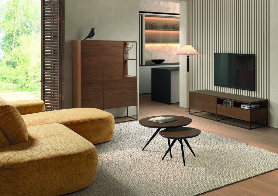 Tv-meubel Adam uit de Eijerkamp Collectie combineert een strak design met praktische functionaliteit en past moeiteloos in uiteenlopende interieurstijlen. Het meubel is uitgevoerd met twee gesloten deuren en één lade, ideaal om apparatuur, afstandsbedieningen en andere spullen netjes uit het zicht op te bergen. De twee open vakken bieden ruimte voor media-apparatuur of om je mooiste woonaccessoires te presenteren.