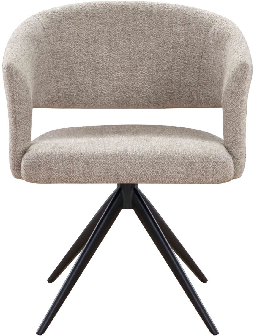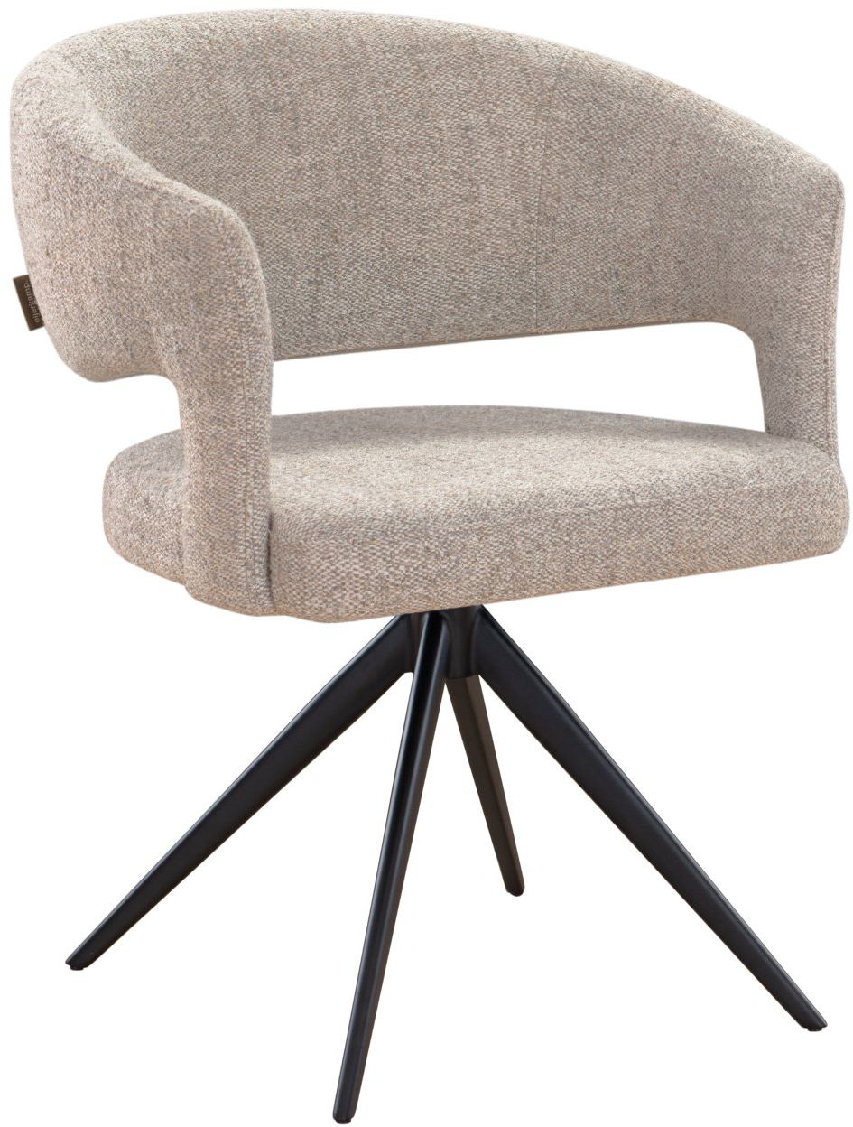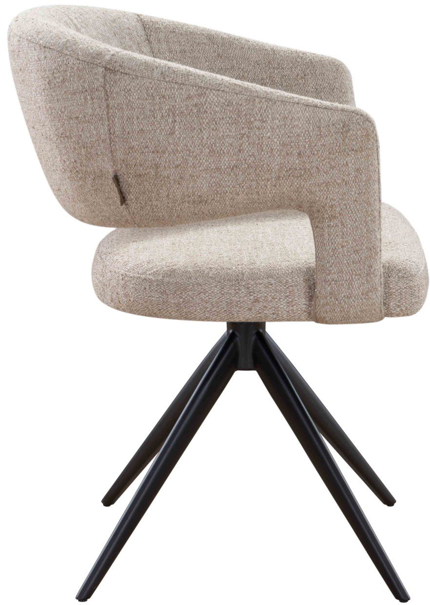 Voeg eigentijdse functionaliteit toe aan je eethoek met armstoel Andy uit de Eijerkamp Collectie. De stoel heeft een comfortabele kuip met open rug en is bekleed met een neutrale stof die eenvoudig te combineren is met diverse interieurstijlen. Het zwarte metalen onderstel met draaifunctie zorgt voor stabiliteit en gebruiksgemak. Ideaal voor lange diners aan tafel of in een moderne eetruimte.