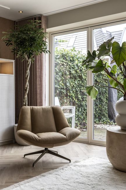 De Brutus Draaifauteuil uit de Eijerkamp Collectie combineert comfort met design. Het draaibare onderstel zorgt voor flexibiliteit, terwijl de vormgeving een stijlvolle toevoeging is aan verschillende interieurs. Verkrijgbaar in diverse uitvoeringen en afwerkingen, waardoor de fauteuil eenvoudig aan te passen is aan persoonlijke voorkeuren.
