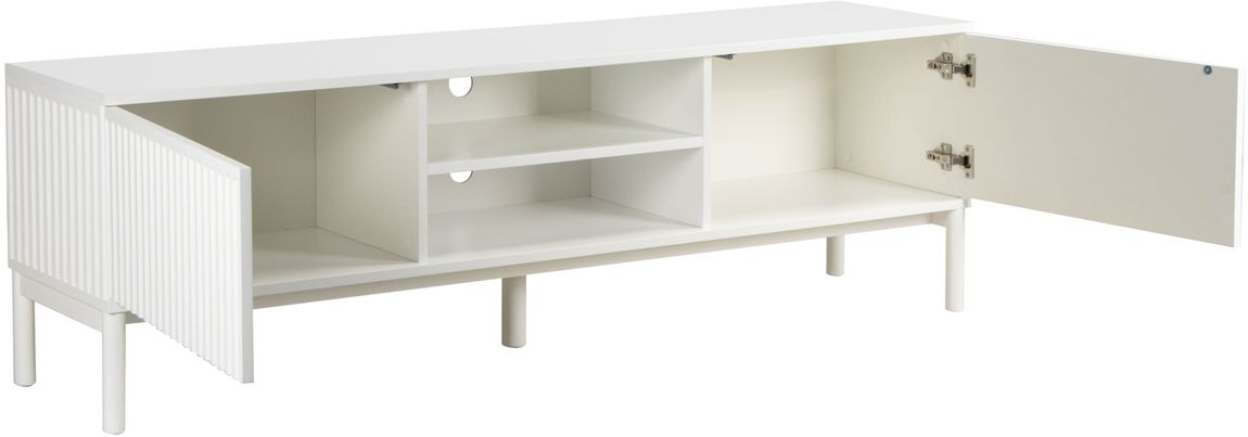 Tv-meubel Celeste uit de Eijerkamp Collectie brengt rust en verfijning in de woonruimte. De witte uitvoering zorgt voor een tijdloze en frisse uitstraling, waardoor het meubel moeiteloos in verschillende interieurstijlen past. De subtiel geribbelde deurtjes geven Celeste een elegant detail, terwijl er voldoende ruimte is om spullen netjes op te bergen.