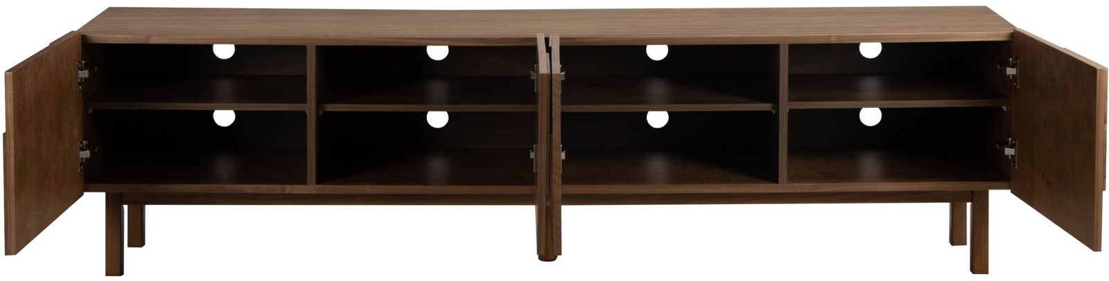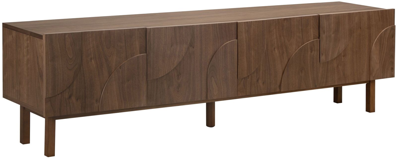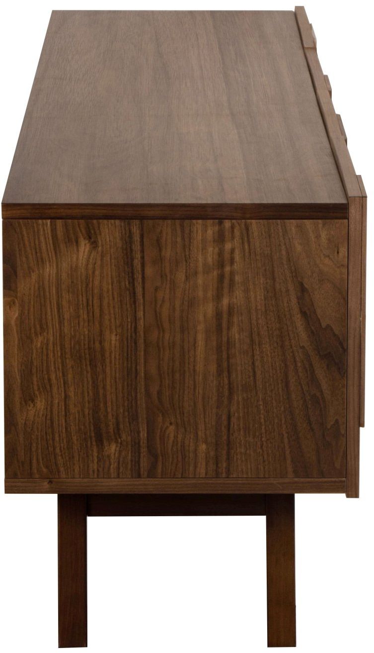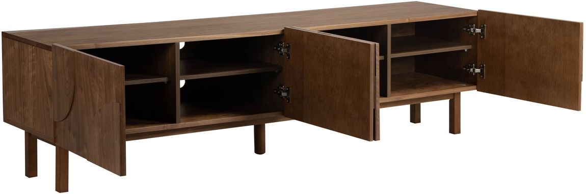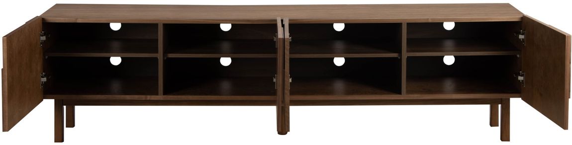Tv-meubel Elaine uit de Eijerkamp Collectie ademt modern Scandinavisch design met een warme, natuurlijke twist. In de rijke houttint Walnut straalt het meubel klasse en geborgenheid uit. De fronten met subtiel reliëf voegen verfijning toe en zorgen voor een stijlvolle balans tussen rust en karakter. Een elegant ontwerp dat warmte en eigentijdse luxe samenbrengt in de woonkamer.