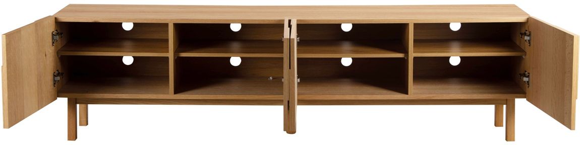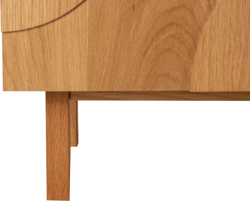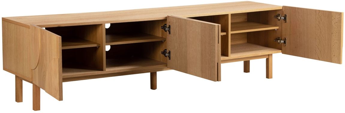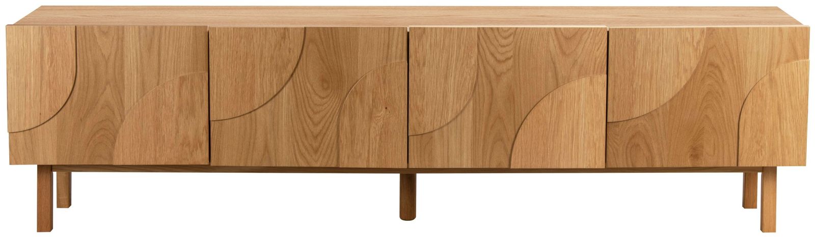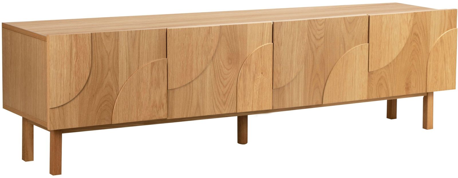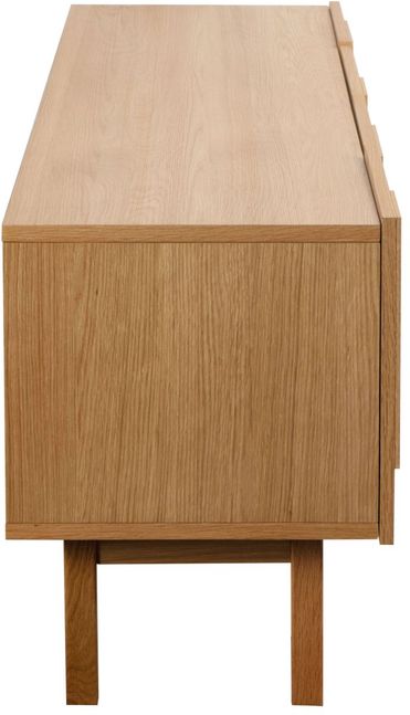Tv-meubel Elaine uit de Eijerkamp Collectie is een stijlvolle toevoeging met een verfijnde Scandinavische uitstraling. De fronten zijn voorzien van een subtiel reliëf dat zorgt voor een decoratief accent en een gevoel van rust in de ruimte. De kast is uitgevoerd in een natuurlijke tint brengt Elaine lichtheid en warmte samen in één tijdloos ontwerp, een echte blikvanger in de woonkamer.