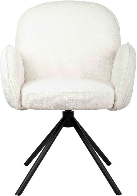 Voeg rust en comfort toe aan de eethoek met de Hidde armstoel in beige uit de Eijerkamp Collectie. De armstoel heeft een afgeronde, gestoffeerde kuip met geïntegreerde armleuningen die zorgen voor een ondersteunende en aangename zit. De zachte beige bekleding geeft Hidde een lichte uitstraling en laat zich eenvoudig combineren met diverse eettafels en interieurstijlen. Het slanke zwarte onderstel zorgt voor stabiliteit en een eigentijds accent.