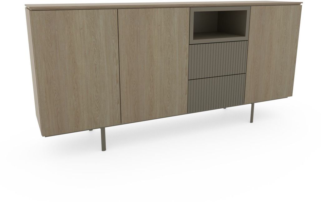 Geef je interieur een strakke en functionele basis met dressoir Junite uit de Eijerkamp Collectie. Dit dressoir is vervaardigd uit massief eiken en eikenfineer en biedt praktische opbergruimte achter deuren en laden. De open nis maakt het mogelijk om decoratieve items of apparatuur overzichtelijk te plaatsen. Dankzij de diverse samenstelmogelijkheden sluit Junite aan op uiteenlopende woonruimtes en indelingen.