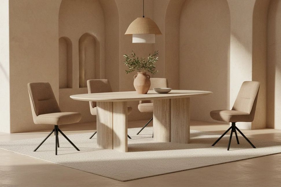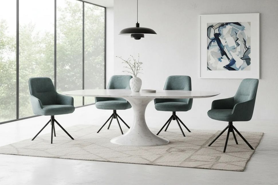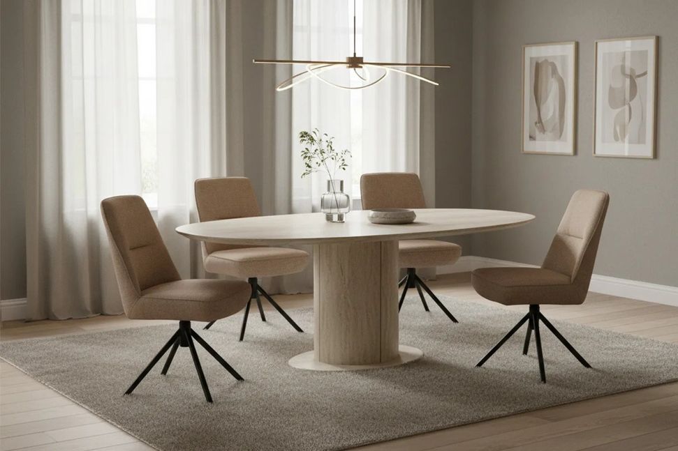 De eetkamerstoel Luca van Eijerkamp Collectie biedt een stijlvol design met hoog zitcomfort, ideaal voor lange avonden aan tafel. De zachte bekleding, goed gevormde zitting en de meekleurende siergaren zorgen voor een rustige, luxe uitstraling en fijne ondersteuning. Dankzij de draaibare zitting en het kruispoot onderstel geniet je van extra gebruiksgemak en stabiliteit. Luca combineert comfort en functionaliteit in een modern ontwerp dat moeiteloos in jouw eetkamer past.