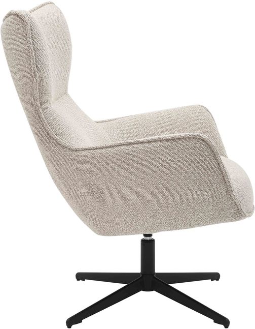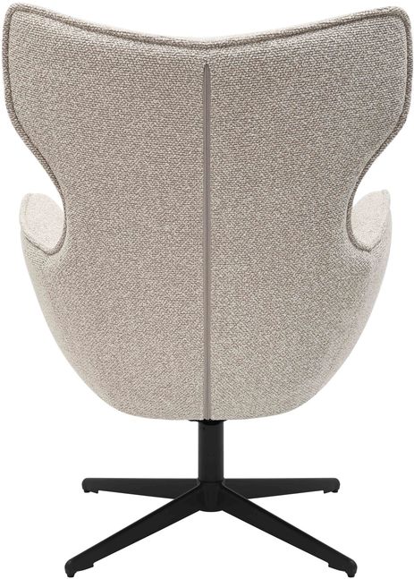 Dankzij de praktische swivelfunctie draai je moeiteloos mee met de ruimte, zonder op te staan. Het zwarte stervormige onderstel geeft de fauteuil een moderne touch en zorgt voor een stabiele basis.