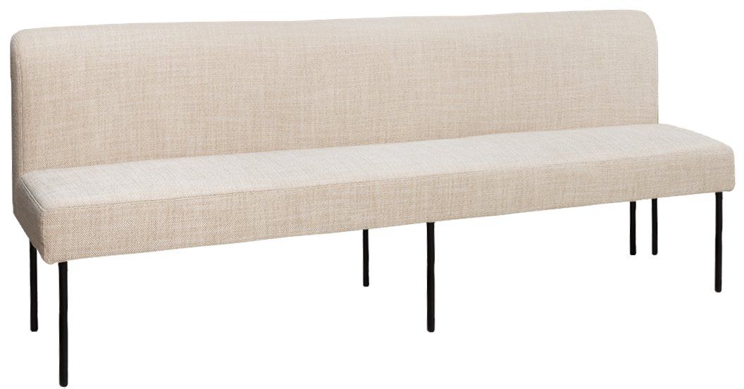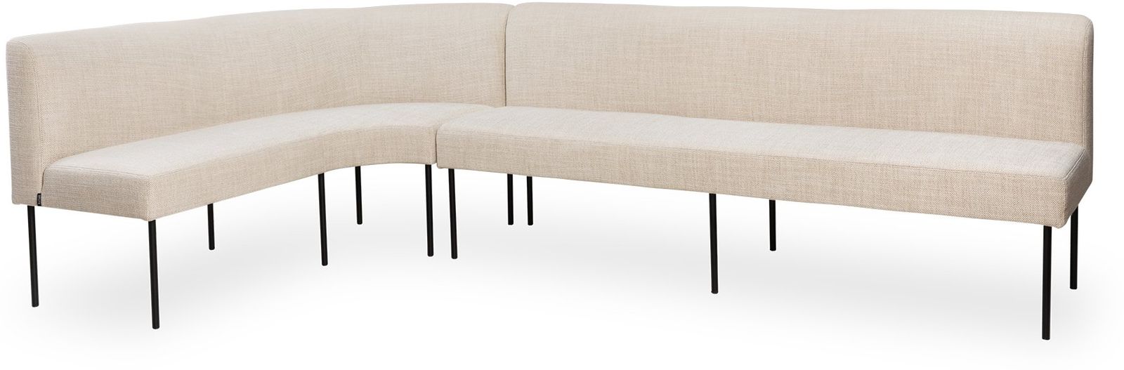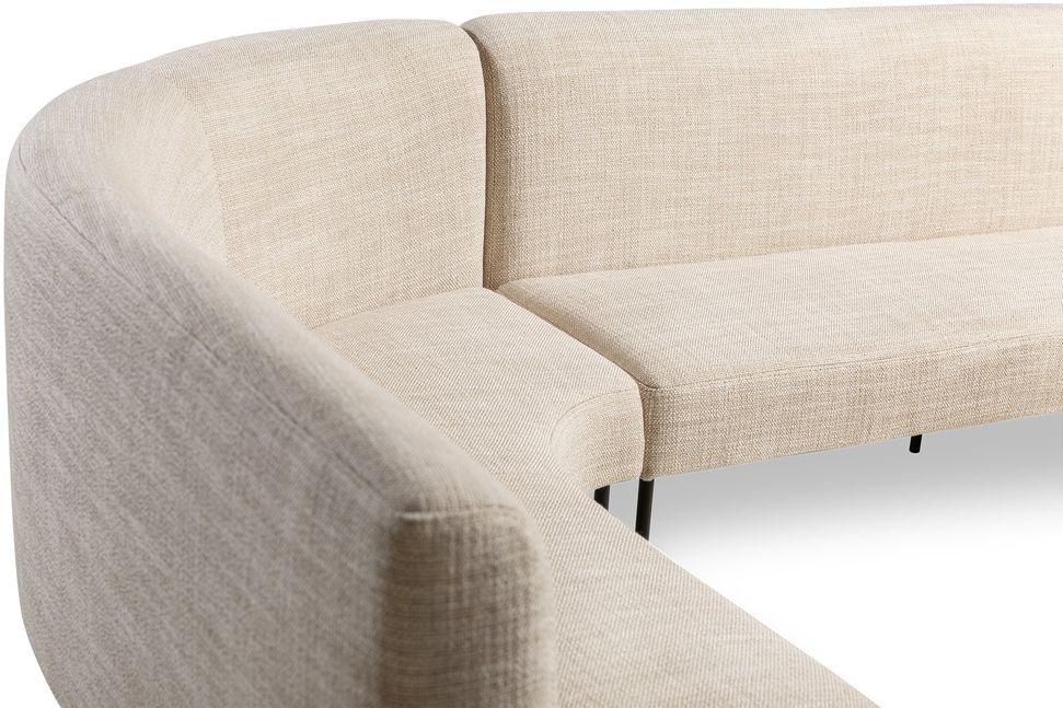 Voeg eigentijdse elegantie toe aan je eetruimte met eetbank Naomi uit de Eijerkamp Collectie. Deze hoekbank combineert strakke lijnen met zachte ronde vormen en is bekleed met een neutrale stof die eenvoudig te combineren is met diverse interieurstijlen. Het zwarte metalen onderstel zorgt voor een luchtige uitstraling en stabiliteit. Ideaal voor aan een eettafel in een modern of Scandinavisch interieur.