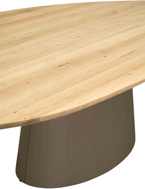 Eettafel Padova uit de Eijerkamp Collectie brengt een moderne uitstraling met een subtiele Scandinavische touch naar de eetruimte. Het organisch gevormde blad zorgt voor een uitnodigend karakter en maakt de tafel tot een centraal element binnen het interieur. Het bruine onderstel voegt warmte toe aan het geheel en zorgt voor een sfeervolle uitstraling die eenvoudig te combineren is met diverse woonstijlen. De zachte lijnen van het ontwerp dragen bij aan een rustige en harmonieuze setting. Dankzij de ovale vorm ontstaat een dynamische zitopstelling zonder vaste hoofdplek, wat bijdraagt aan een open en sociale sfeer aan tafel.