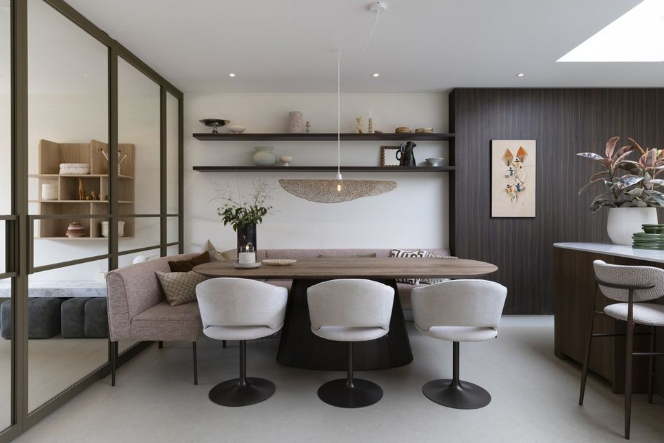 De Plat Ovaal Eettafel uit de Eijerkamp Collectie is volledig naar wens samen te stellen. Kies zelf de afmeting, houtsoort, afwerking en het onderstel dat past bij jouw interieur. Het elegante, platte ovale blad geeft de tafel een zachte uitstraling, terwijl de centrale poot zorgt voor een krachtig en eigentijds silhouet. Dankzij de ruime keuze in materialen en kleuren ontwerp je een tafel die naadloos aansluit op jouw woonstijl.