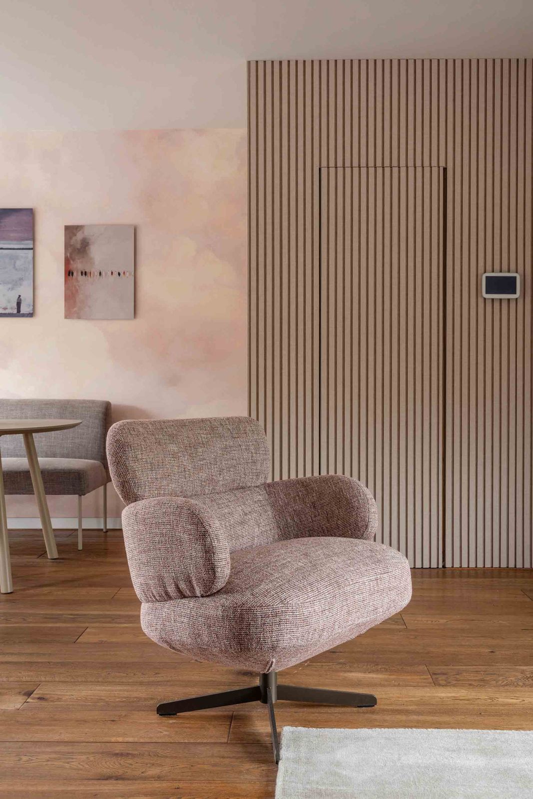 Laat je verwelkomen door de knusheid van draaifauteuil Ronja. Met zijn trendy design en zachte bekleding nodigt Ronja uit tot lange, gezellige avonden. Met zijn ergonomisch ontworpen zitting en ondersteunende rugleuning biedt deze draaifauteuil een optimaal zitcomfort. Terwijl je ontspant, biedt het handige draaimechanisme de mogelijkheid om moeiteloos in elke gewenste richting te draaien.