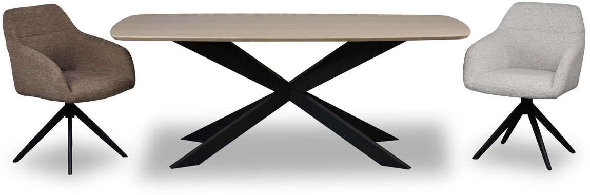 Eettafel Stitch uit de Eijerkamp Collectie vormt de perfecte balans tussen elegantie en kracht. Het lichte eiken tafelblad brengt een gevoel van ruimte en luchtigheid in de eetkamer, waardoor een open en uitnodigende sfeer ontstaat. Het donkere, robuuste onderstel zorgt voor een stijlvol contrast en geeft de tafel een stoere uitstraling.