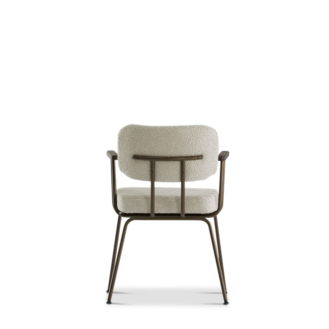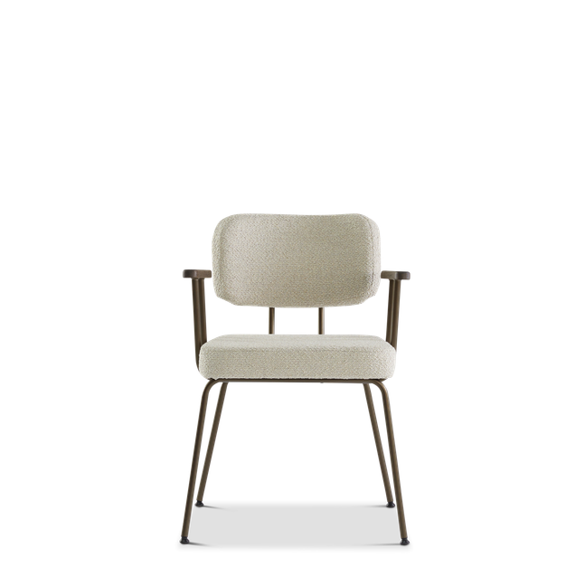 De Eijerkamp Collectie Tom Eetkamerstoel is onmisbaar in jouw interieur. Kenmerkend aan de stoel is het minimalistisch vormgegeven design in combinatie met de tijdloze klasse die de stoel uitstraalt. Hierdoor krijgt de eetkamerstoel een stijlvol contrast. Door de strakke lijnen en minimalistische vormgeving voegt de stoel een vleugje verfijning toe aan vrijwel iedere eetruimte. De eetkamerstoel wordt gedragen door een metalen onderstel. De zachte vormgeving zorgt voor een uitnodigend karakter, waardoor je urenlang comfortabel kunt tafelen. Combineer de stoel met de Tom eetkamerbank om zo een geheel te creëren. Naast de getoonde uitvoering met armleuningen is de eetkamerstoel ook verkrijgbaar zonder armleuningen.
