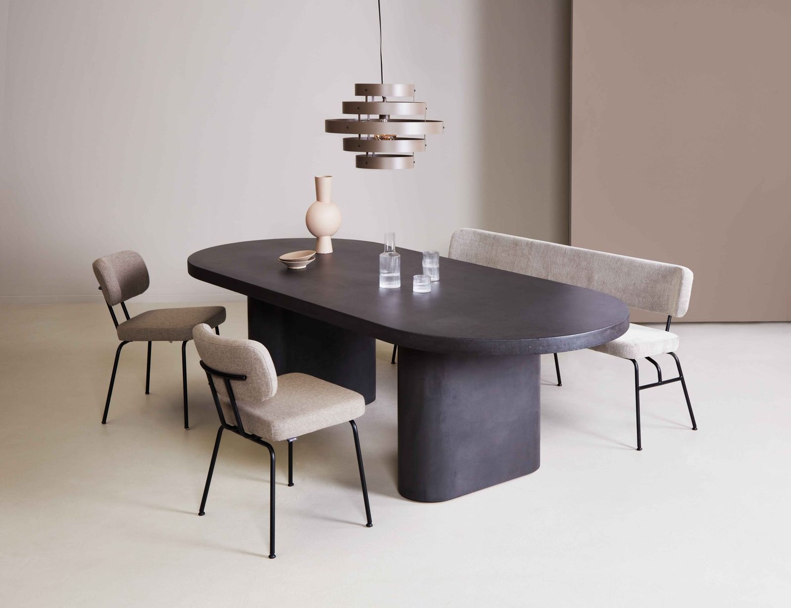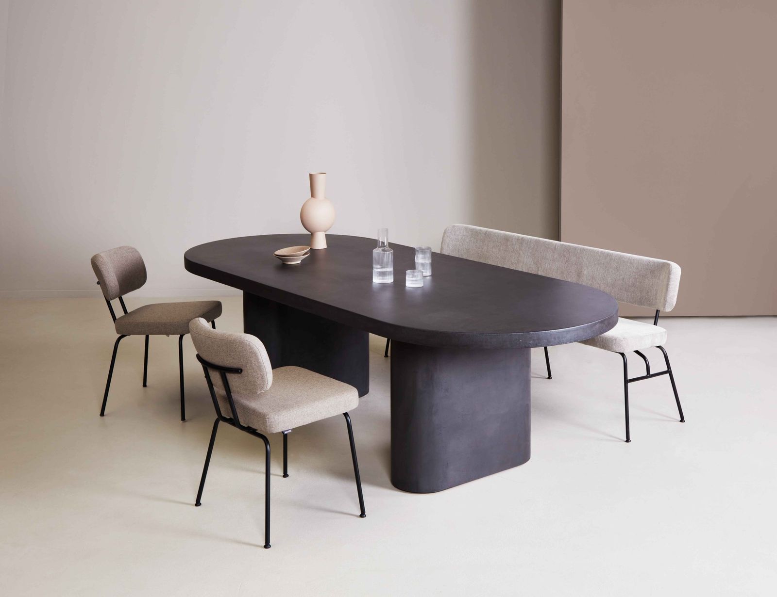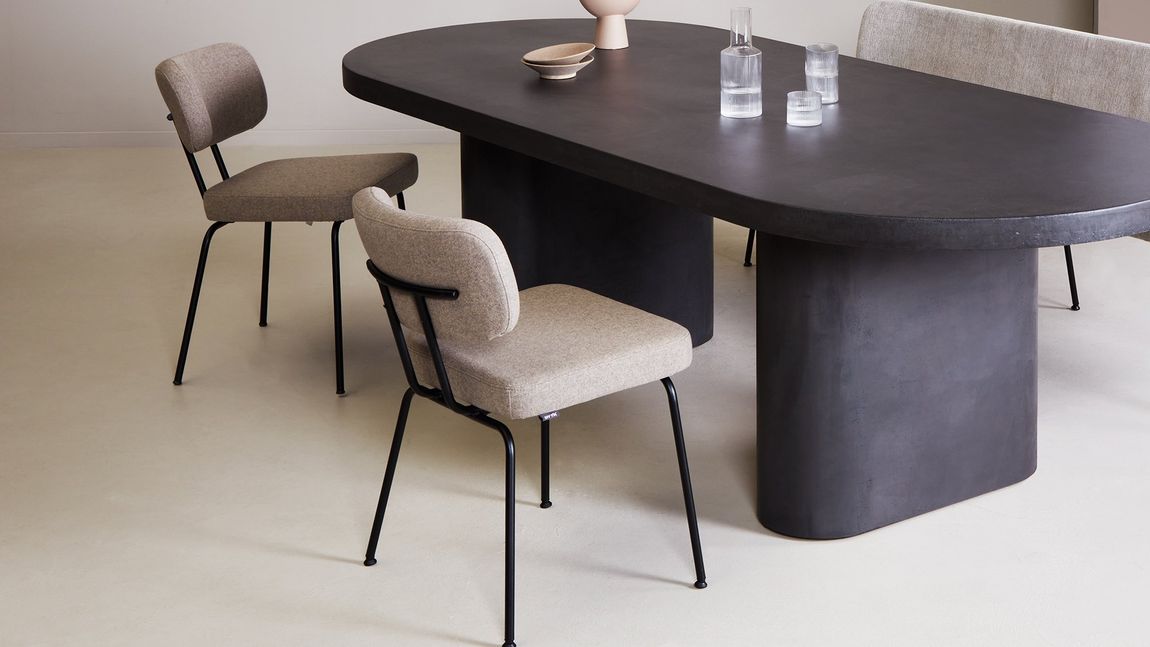 De eetkamerstoel wordt gedragen door een metalen onderstel. De zachte vormgeving zorgt voor een uitnodigend karakter, waardoor je urenlang comfortabel kunt tafelen. Combineer de stoel met de Tom eetkamerbank om zo een geheel te creëren. Naast de getoonde uitvoering zonder armleuningen is de eetkamerstoel ook verkrijgbaar met armleuningen.
