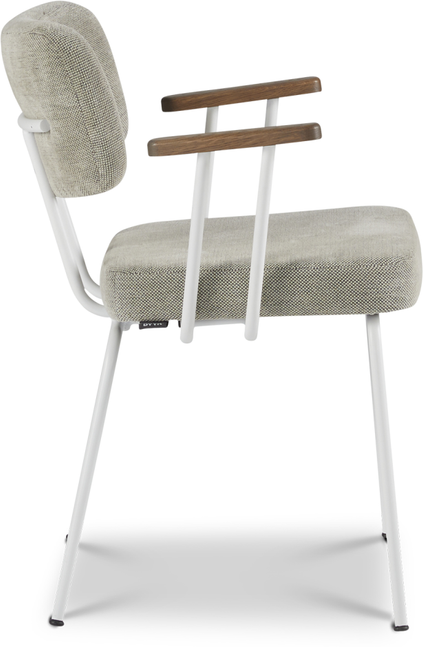 De Eijerkamp Collectie Tom Eetkamerstoel is onmisbaar in jouw interieur. Kenmerkend aan de stoel is het minimalistisch vormgegeven design in combinatie met de tijdloze klasse die de stoel uitstraalt. Hierdoor krijgt de eetkamerstoel een stijlvol contrast. Door de strakke lijnen en minimalistische vormgeving voegt de stoel een vleugje verfijning toe aan vrijwel iedere eetruimte. De eetkamerstoel wordt gedragen door een metalen onderstel. De zachte vormgeving zorgt voor een uitnodigend karakter, waardoor je urenlang comfortabel kunt tafelen. Combineer de stoel met de Tom eetkamerbank om zo een geheel te creëren. Naast de getoonde uitvoering met armleuningen is de eetkamerstoel ook verkrijgbaar zonder armleuningen.