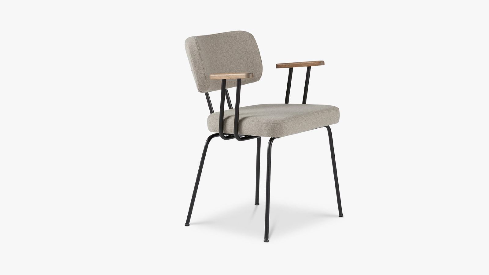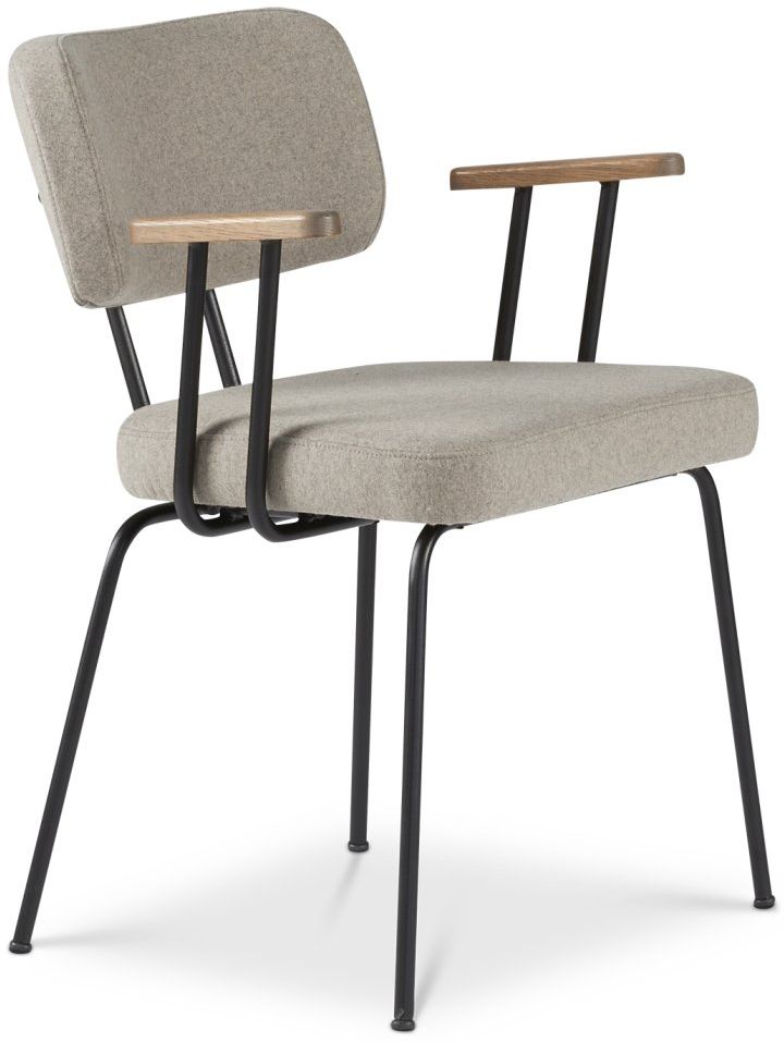De eetkamerstoel wordt gedragen door een metalen onderstel. De zachte vormgeving zorgt voor een uitnodigend karakter, waardoor je urenlang comfortabel kunt tafelen. Combineer de stoel met de Tom eetkamerbank om zo een geheel te creëren. Naast de getoonde uitvoering met armleuningen is de eetkamerstoel ook verkrijgbaar zonder armleuningen.