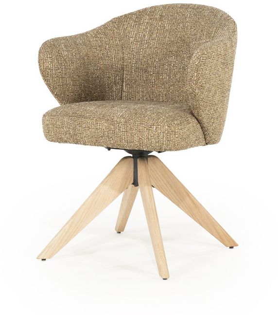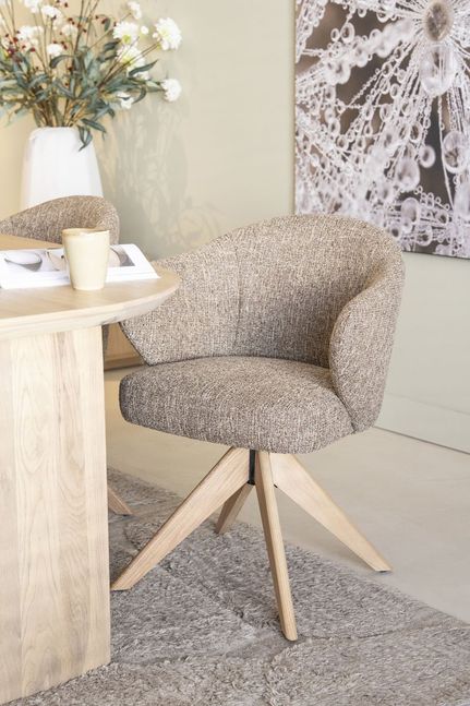 De Connor Hout eetkamerstoel van Eleonora is een eigentijdse stoel met een zachte, uitnodigende uitstraling. De ronde vormen van de kuip en de subtiel doorlopende armleuningen zorgen voor een comfortabel en geborgen zitgevoel. Het houten onderstel met kruisverbinding geeft de stoel een stevige basis en versterkt het natuurlijke karakter van het ontwerp. De combinatie van de zachte bekleding en het lichte hout zorgt voor een harmonieus geheel dat moeiteloos past binnen Scandinavische, moderne en landelijke interieurs.