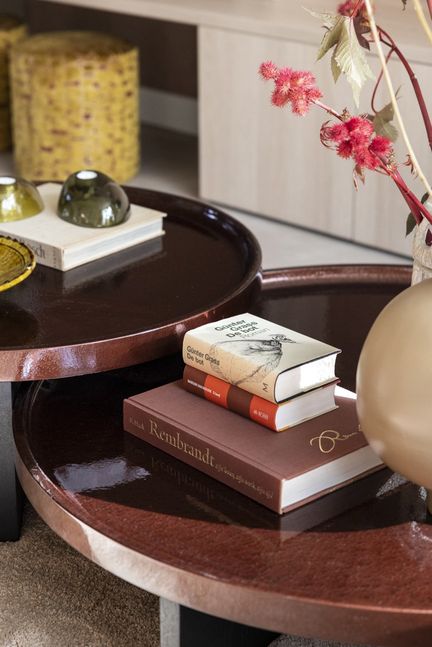 Salontafel Mayson van Eleonora is een ronde tafel die direct de aandacht trekt in je interieur. Met zijn diepe rode kleur fungeert hij als echte eyecatcher in de woonkamer. Het onderstel is vervaardigd uit zwart hout en zorgt voor een stabiele basis. Het royale blad biedt ruimte voor glazen, schalen of decoratieve items. Dankzij de stevige basis staat de tafel stabiel en praktisch midden in de zithoek.