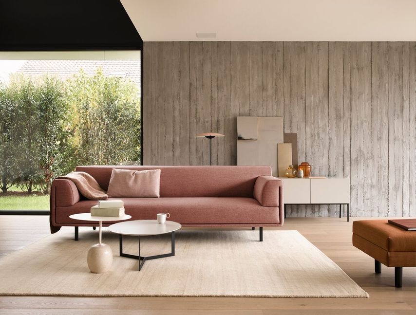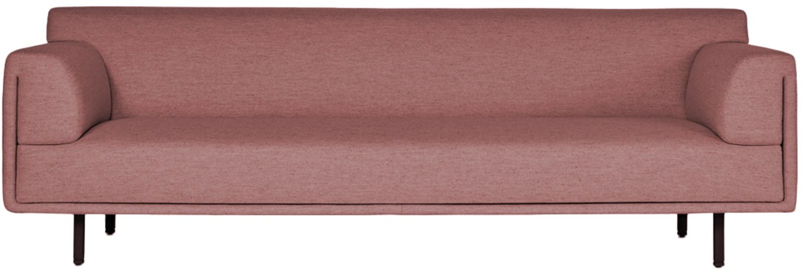 De in het oog springende omlijsting die beide armleuningen met elkaar verbindt, creëert een bijzonder lijnenspel dat op subtiele wijze terugkomt als inkeping in de ranke poten van de bank. Deze smalle ronde poten staan iets naar binnen geplaatst, waardoor Dura nagenoeg lijkt te zweven in de ruimte en er een luchtig, ruimtelijk effect ontstaat.
