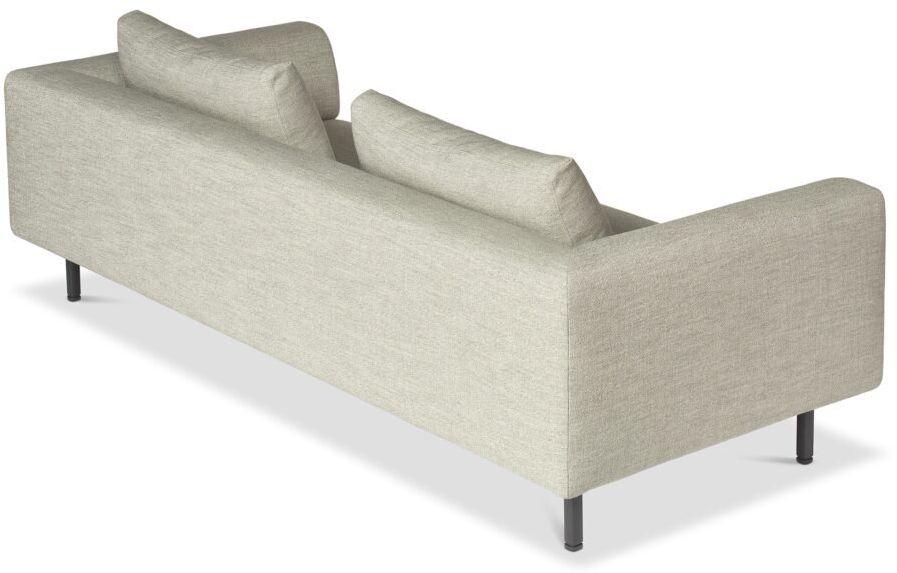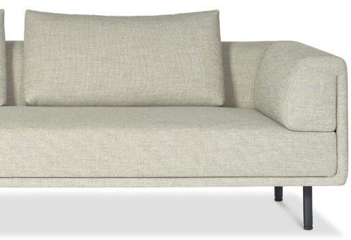 De in het oog springende omlijsting die beide armleuningen met elkaar verbindt, creëert een bijzonder lijnenspel dat op subtiele wijze terugkomt als inkeping in de ranke poten van de bank. Deze smalle ronde poten staan iets naar binnen geplaatst, waardoor Dura nagenoeg lijkt te zweven in de ruimte en er een luchtig, ruimtelijk effect ontstaat.