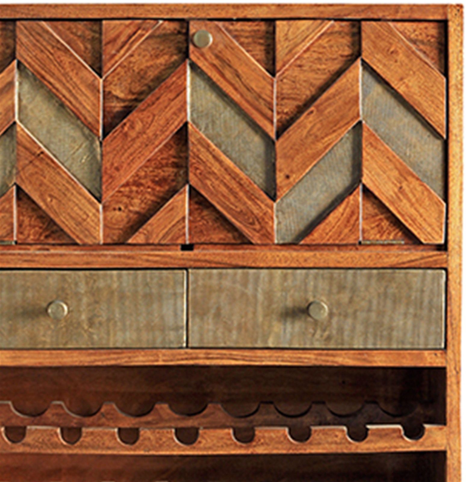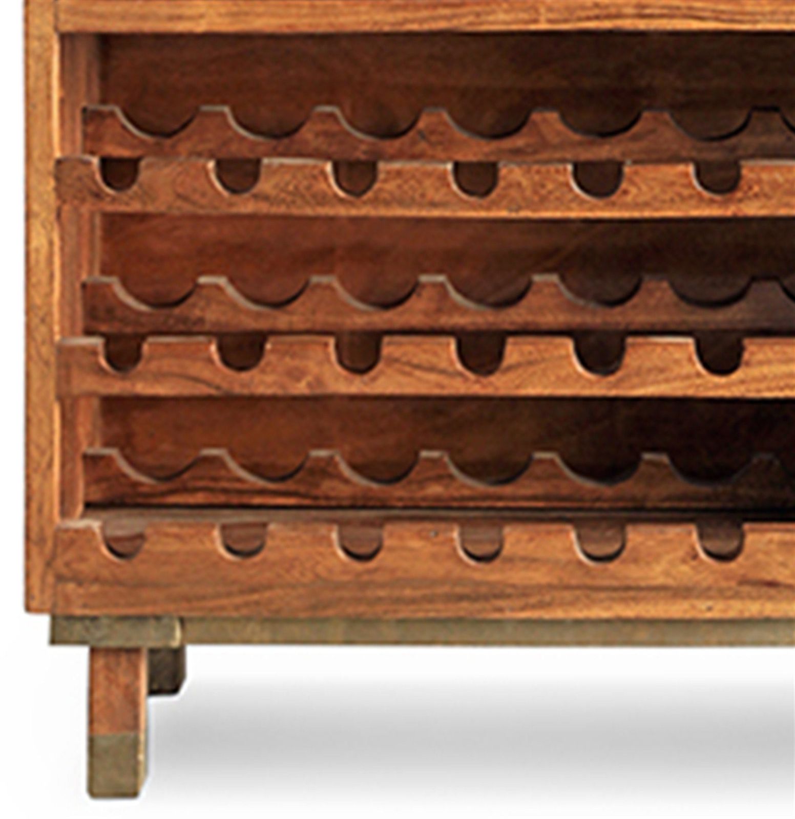 Geef al je favoriete wijnflessen en glazen een waardige plek in huis met wijnkast Gaya uit de collectie van Feelings! Gaya is volledig vervaardigd uit acaciahout en is voorzien van vlechtpatroon. Getoond model is uitgevoerd met twee deuren, twee lades en plek voor maar liefst 27 (wijn)flessen!