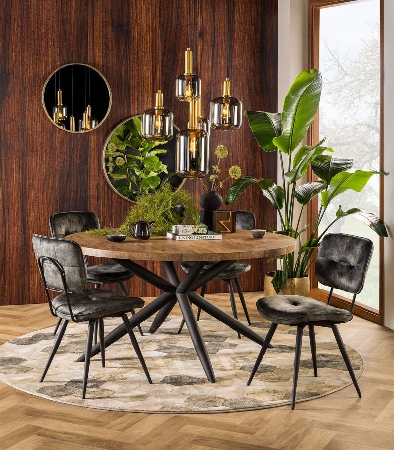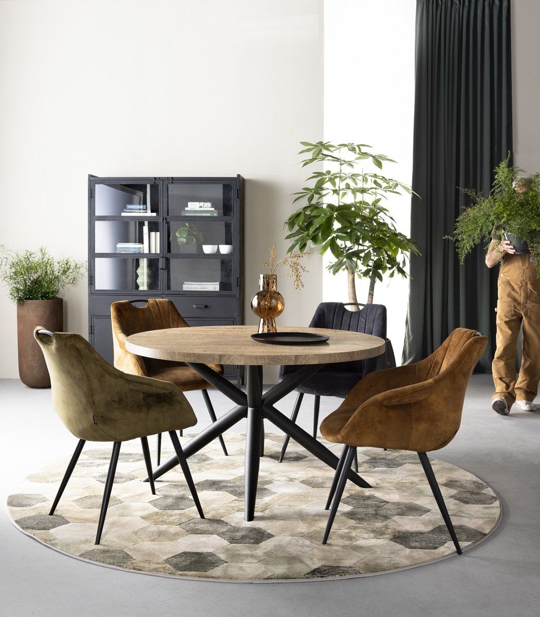 Ronde eettafel Brandy van Feelings geeft het interieur een stoere uitstraling door het robuuste houten blad. Het tafelblad is vervaardigd uit lamulux in de kleur mango en staat op een chique onderstel van zwart metaal. Schuif aan in onze woonwinkels in Zutphen en Veenendaal en ontdek de voordelen van een ronde eettafel in huis!