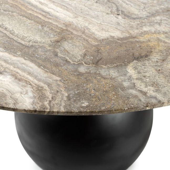 Met eetkamertafel Delphi van het merk Feelings kan er in stijl worden gedineerd. Door zijn blad gemaakt uit travertin heeft deze tafel een tijdloze aantrekkingskracht. Daarnaast vormt de bolvormige poot, gemaakt van hoogwaardig metaal, de perfecte balans tussen stabiliteit en elegantie.