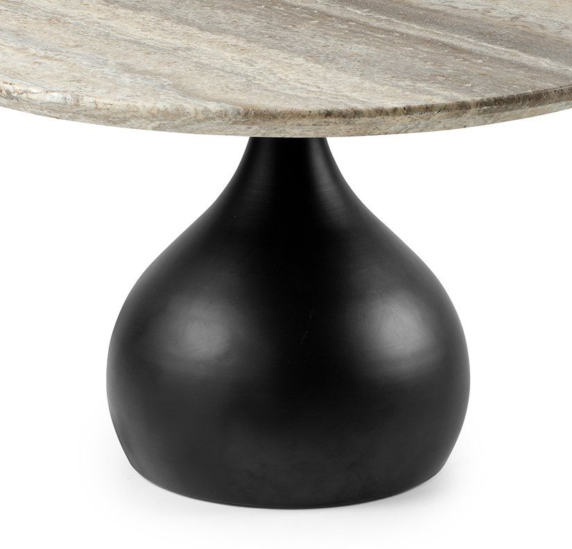 Salontafel Delphi van het merk Feelings nodigt uit om te ontspannen. Door zijn blad gemaakt uit Travertin biedt het een elegante uitstraling. Daarnaast zorgt de bolvormige poot gemaakt van hoogwaardig metaal voor de nodige stabiliteit.