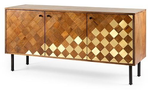 Dressoir Dorado van het merk Feelings straalt tijdloze charme uit door zijn klassieke dambordpatroon. Dit houten meubel staat op hoge poten. Naast elegant is dit dressoir ook functioneel door de ruime opbergruimte die dit meubel biedt dankzij zijn drie deuren.