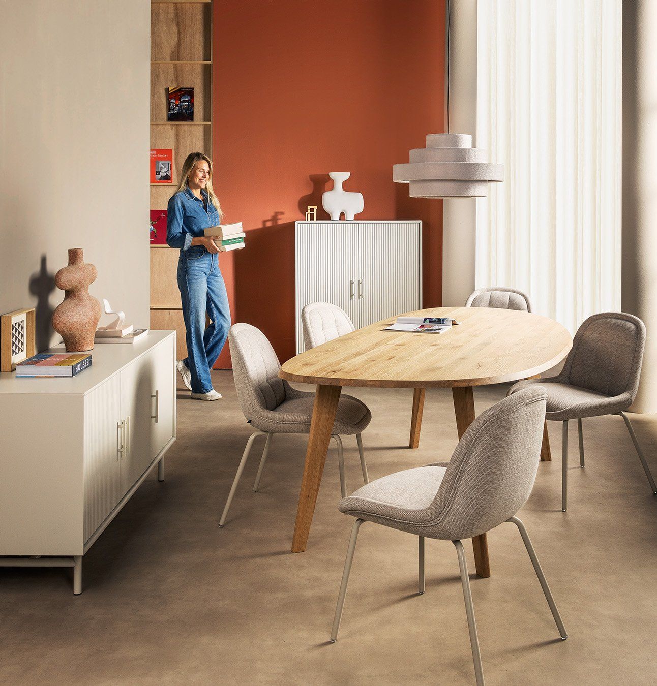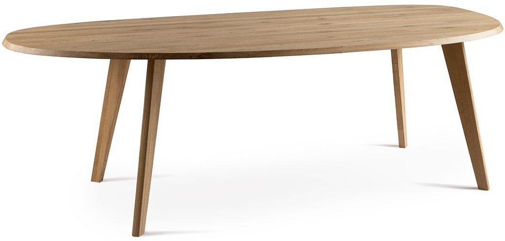 Eettafel Geronimo van Feelings is een elegante tafel met een speelse touch. Gemaakt van hoogwaardig eikenhout, brengt deze eettafel een natuurlijke esthetiek in jouw interieur. Geronimo's organische vorm geeft hem niet alleen zijn kenmerkende uiterlijk, maar zorgt ook voor voldoende ruimte om uitgebreid te tafelen. Met zijn veelzijdigheid past de Geronimo eettafel perfect in elke eetkamer, keuken of zelfs in een kantooromgeving.