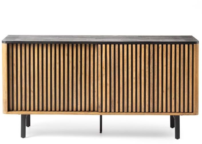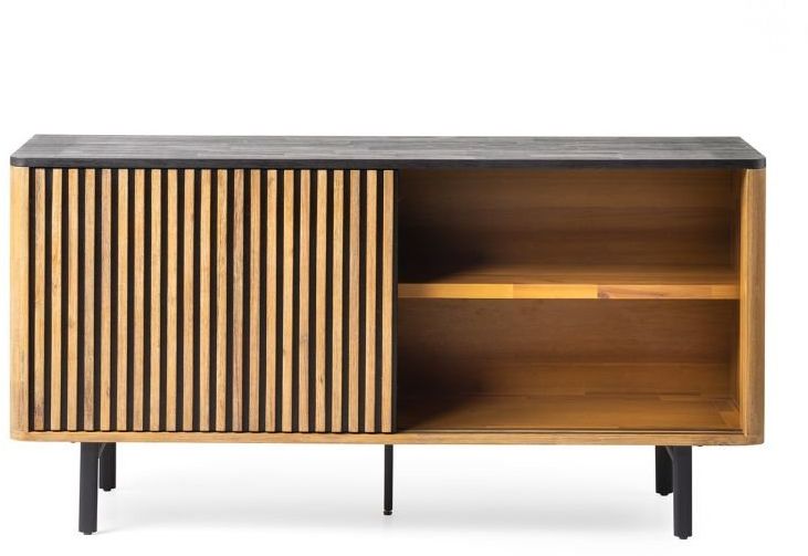 Voeg een uniek element toe aan je woonruimte met het dressoir Larvik uit de Feelings-collectie. De combinatie van acaciahout met zwarte poten en tafelblad geeft dit meubelstuk een opvallende uitstraling. Bovendien is het voorzien van twee schuifdeuren. De warme caramelkleur van het hout brengt een gezellige sfeer in je woonruimte. Dankzij zijn royale breedte kan Larvik ook dienen als TV-meubel.