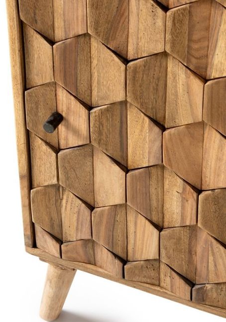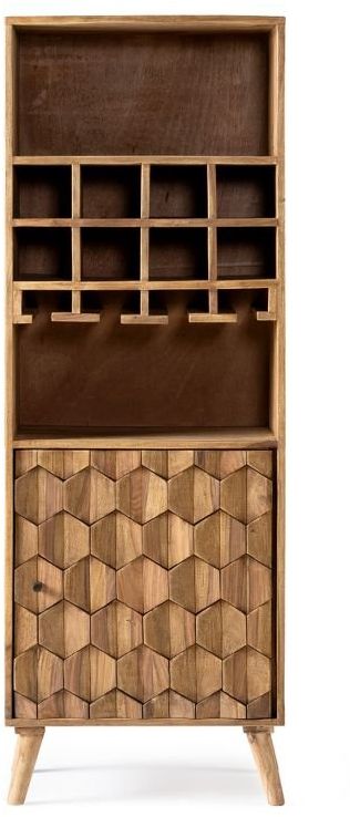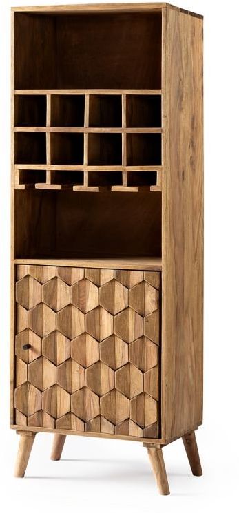 Wijnkast Miguel uit de collectie van Feelings is een landelijke kast met een opvallend design. Miguel heeft een uniek 3D patroon geïnspireerd op een honinggraat die de kast zijn speelse uiterlijk geeft. De wijnkast heeft diverse opbergmogelijkheden waardoor je allerlei spullen zowel in als uit het zicht kunt opbergen.