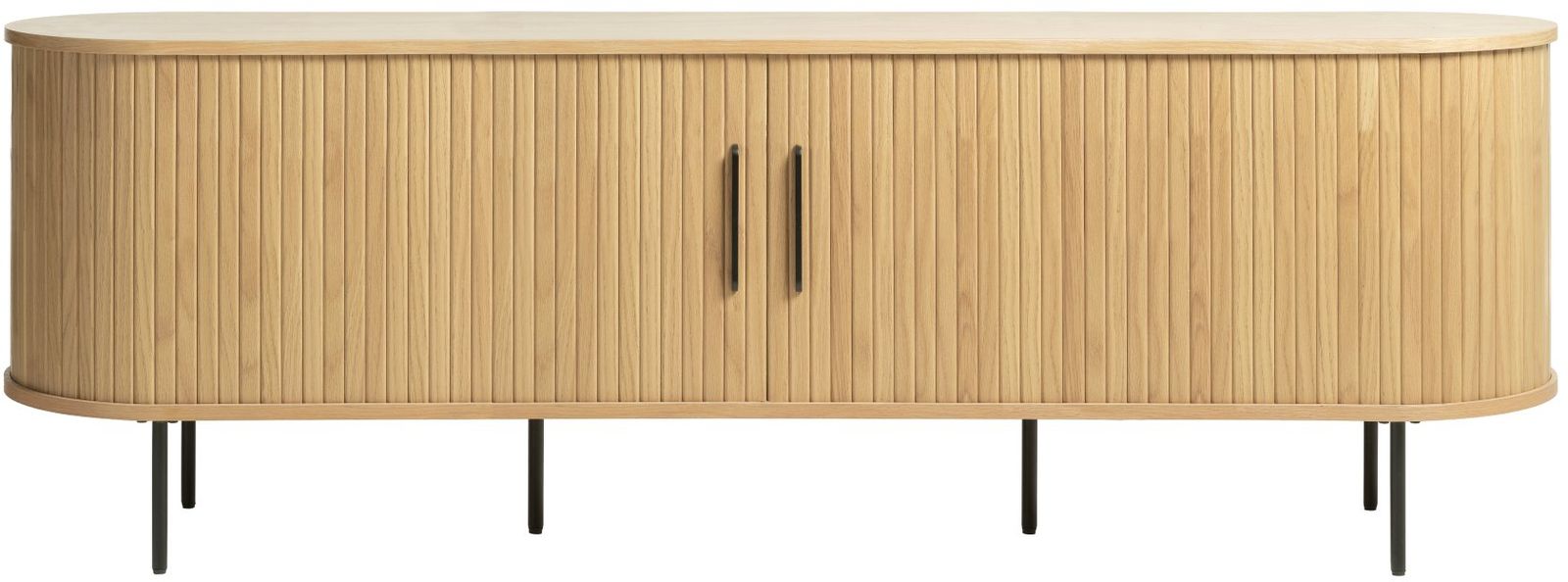 Het naturel kleurige tv-meubel Philou uit de Eijerkamp Collectie is een essentiële toevoeging aan je interieur. Met zijn elegante zwarte poten van metaal in combinatie met het contrasterende naturelkleurige eiken fineer straalt Philou een unieke stijl uit. Het meubel beschikt over twee roldeuren die toegang geven tot vier vakken, waardoor het ideaal is voor het opbergen van al je benodigdheden. Maak gebruik van de diverse meubels uit de Philou serie en combineer ze voor een verfijnd geheel.
