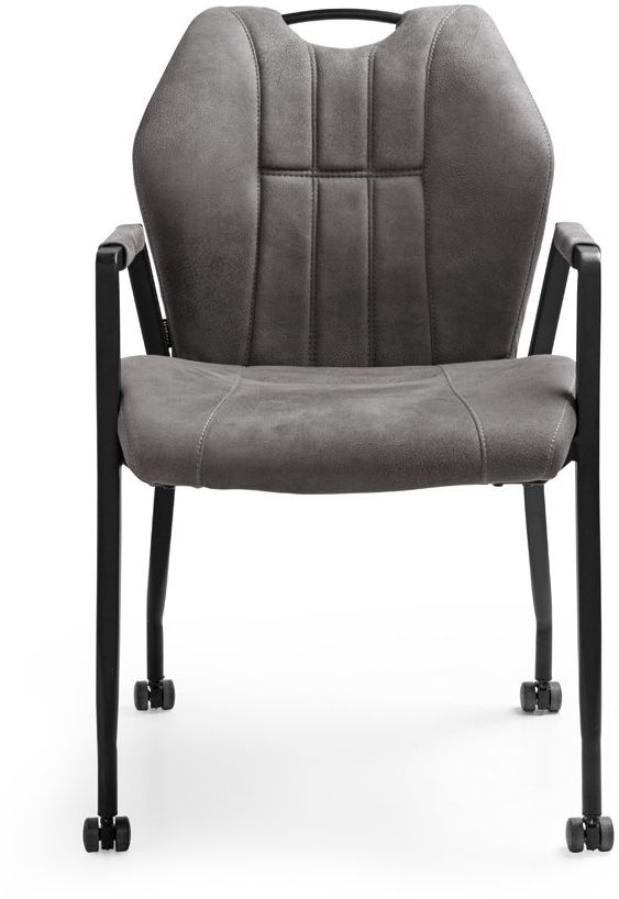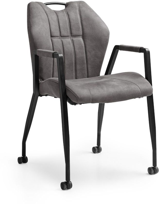 Eetkamerstoel Point van interieurmerk Feelings is perfect om lekker lang te eten en borrelen met vrienden en familie. De stoel is voorzien van armleuningen die voor een prettig zitcomfort zorgen. Point heeft een stevig frame dat vervaardigd is uit metaal en een zwarte afwerking heeft. De stoel is uitgerust met parketwieltjes, waardoor deze eenvoudig te verplaatsen is en wat het in- en uitstappen gemakkelijker maakt. Getoond model is bekleed met de microvezelstof Zorro in de kleur antraciet, maar de stoel is tevens verkrijgbaar in de kleuren cognac en moss. Het stoere design van Point maakt deze een geschikte toevoeging aan ieder industrieel interieur.