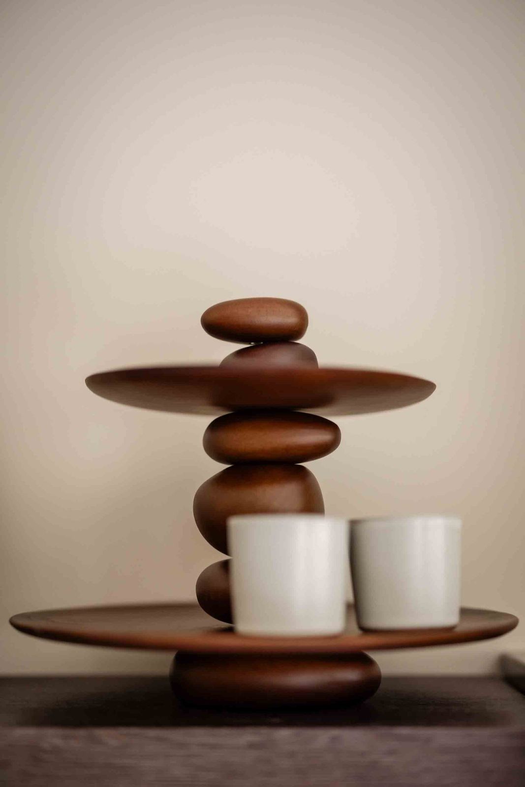 Breng natuurlijke balans in huis met de Pebble Dessert Stand van Ferm Living. Geïnspireerd op de zachte vormen van rivierstenen, bestaat deze etagère uit twee beukenhouten schalen die worden gedragen door organisch gevormde elementen. Een functioneel ontwerp dat rust en eenvoud combineert met sculpturale expressie.