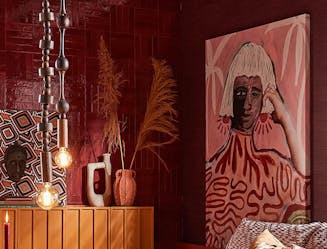 Kom binnen in een creatieve broedplaats met ontspannen low key zithoek, compacte eethoek en kleurrijk hemelbed voor het echte travel lodge gevoel. Ontdek een wereldse mix van expressieve kleuren, eclectische print-op-print, ritmische texturen en imposante kunstwerken in woonstijl Atelier Nomad.