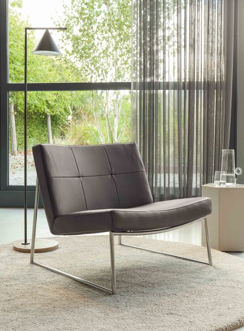 Fauteuil Hebbes is exclusief verkrijgbaar bij Eijerkamp in zes unieke kleuren leder Luxe en een onderstel in de kleur chrome. Prijs is als getoond.